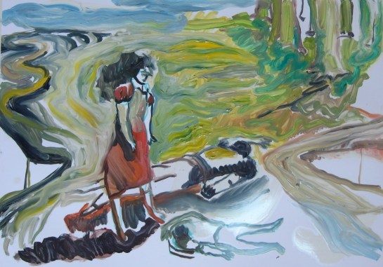 2011. huile et feutres sur papier. 29, 7 X 43 cm
